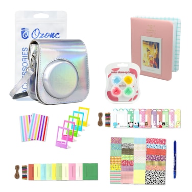 O Ozone - Fujifilm Accessories, Instax Mini 11 Case PU Leather with Strap - Silver, Pink Album