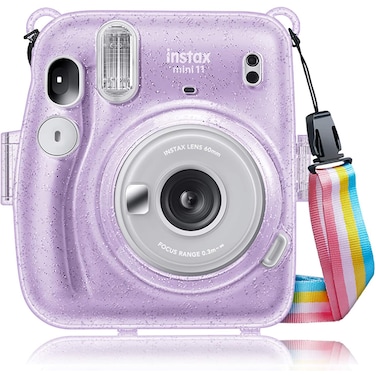O Ozone Transparent Hard Camera Case For Fujifilm Instax Mini 11 Instant Camera Cover With Adjustable Strap [ Shining Case Designed For Instax Mini 11 Case ] - Glitter Purple