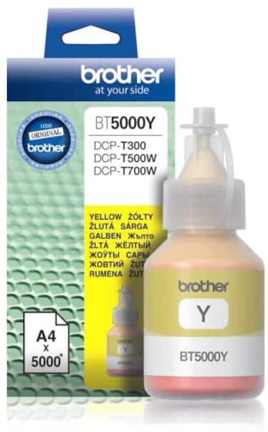 - <p>Color:Yellow<p>The Use Of Brother Genuine Replacement Ink Bottles Like The Bt5000Y Not Only Produces Sharp, High-Quality Printouts With No Streaking Or Smudging - It Also Lets You Save Money, Time And Paper Due To Less Downtime Or Repairs. The Brother Bt5000Y Yellow Ink Bottle Is For Use With Brother Printers With Ink Tank System. This Refillable Ink Bottle System Is Intelligently Engineered To Work In Seamless Unison Without Compromising The Quality Of The Print. This Ink Bottle Is For Use With The Following Brother Refillable Ink Tank Printers And All-In-Ones: Dcp-T300, Dcp-T500W, Dcp-T700W, Mfc-T800W, Dcp-T310, Dcp-T510W, Dcp-T710W, Mfc-T910Dw.<p>Brother Genuine Ink Bottles: Brother Bt5000Y Is A Genuine Brother Ink Bottle That Produces High Quality, Color Inkjet Prints You Can Depend On<p>Yields Up To 5,000 Pages: This Replacement Ultra High Yield Yellow Ink Bottle Can Print Approximately 5,000 Pages<p>Lower Your Cost Per Print: Save More With Every Print With Brother’S Ultra High Yield Ink Bottles<p>For Use With Brother Printers: Dcp-T300, Dcp-T500W, Dcp-T700W, Mfc-T800W, Dcp-T310, Dcp-T510W, Dcp-T710W, Mfc-T910Dw<p>7.6 X 5.1 X 15.2 Cm, 82 Grams