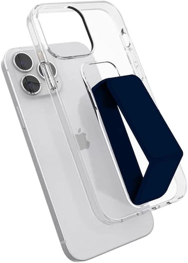 Apple iPhone 14 Pro Case With Hand Grip Foldable Magnetic Kickstand Wrist Strap Finger Grip Cover 6.1 Inch Clear/DarkBlue