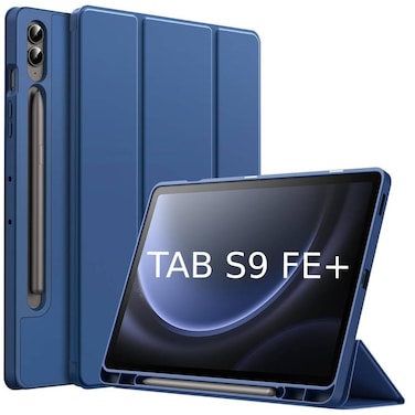 Case For Samsung Galaxy Tab S9 FE+ 12.4 Inch, Slim Translucent Back Tri-Fold Stand Protective Tablet Cover, Support S Pen Charging, Auto Wake/Sleep (Blue)
