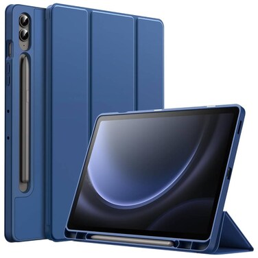 Case For Samsung Galaxy Tab S9 FE+ / S9 FE Plus 12.4-Inch with S Pen Holder, Soft TPU Tri-Fold Stand Protective Tablet Cover, Support S Pen Charging, Auto Wake/Sleep (Blue)