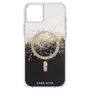 Classy, fabulous, and now MagSafe compatible! Karat Onyx includes built-in magnets that allow you to simply snap on your MagSafe charger and accessories for the fastest wireless charging experience. Sparkles cascade down the case into a deep onyx hue, bringing you elegance with a hint of shimmer.