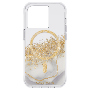 Case-mate's best selling case now includes built in magnets to support Apple MagSafe chargers and accessories. Give your iPhone 14 Pro a hint of luxury all while staying functional and protected. The semi-opaque marble design with gold karat accents lets the natural beauty of your device shine through.