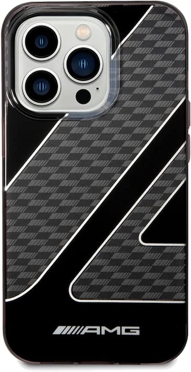CG Mobile AMG Transparent Double Layer Case With Checkered Flag Pattern Crystal Case/Bumper Protection/Anti-Explosion/Anti-Fall/Anti-Scratch Compatible With iPhone 14 Pro 6.1" (Black)