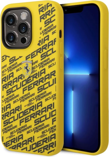 CG Mobile Ferrari Liquid Silicone Case All Over Printed Scuderia Compatible with iPhone 14 Pro (Yellow)