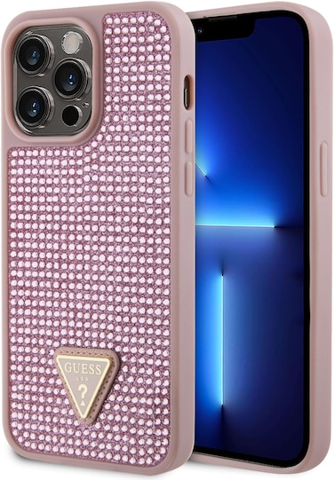 CG Mobile Guess Rhinestone Case with Triangle Logo for iPhone 15 Promax - Pink
