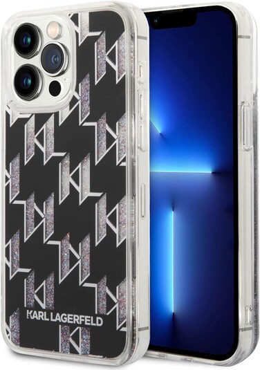 CG Mobile Karl Lagerfeld Liquid Glitter Case Monogram Pattern & Multicolor Glitter Scratch Resistant/Non-Slipping/Anti-Scratch Compatible With iPhone 14 Pro Max 6.7"