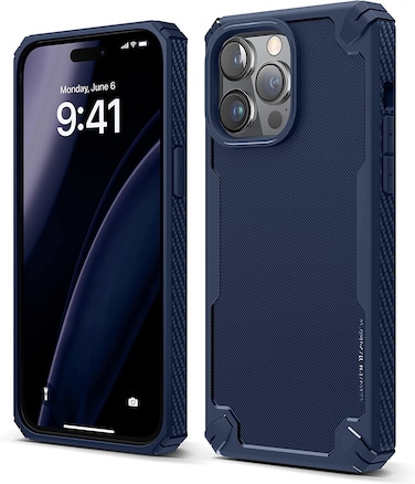 Elago Armor for iPhone 14 Pro Max Military Grade case cover with Carbon Fiber Patern - Jean Indigo
