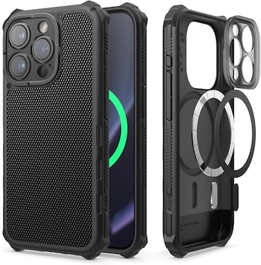 elago Magnetic Armor for iPhone 15 Pro Max Military Grade compatible with MagSafe case cover with Rigid Pattern - Black