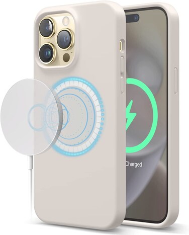 Elago Silicone case for iPhone 14 Pro MAX (6.7 inch) compatible with MagSafe designed into the inner part of the case to ensure your phone latches on to the charger and prevent it from falling.