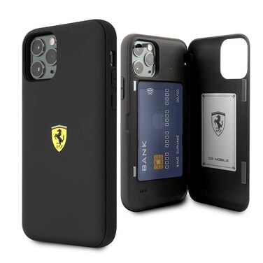 Ferrari - Apple iPhone 11 Pro Case, On Track PC/TPU Case with Cardslot & Magnetic Clos Compatible for iPhone 11 Pro and support Wireless Charging, Easy Access to All Ports, CG Mobile Officially Licensed - Black