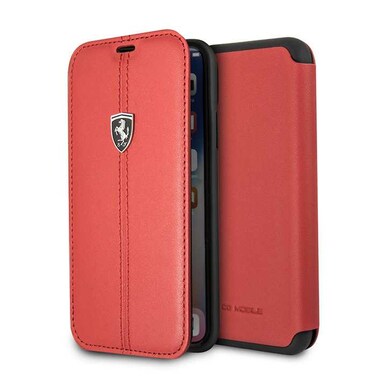 Ferrari - Apple iPhone X Case, Heritage Book Type Case Compatible for iPhone X and support Wireless Charging, Easy Access to All Ports, CG Mobile Officially Licensed- Red