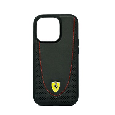 Ferrari Magsafe Leather Stitched Red Line Hard Case For Iphone 14 Pro Black