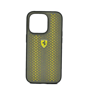 Ferrari Pu Leather Perforated Case With Nylon Base & Yellow Shield Logo For Iphone 14 Pro Max Yellow