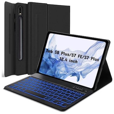 Galaxy Tab S7 FE 5G Case with Keyboard, Compatible with Samsung Galaxy Tab S8 Plus/S7 FE/S7 Plus 12.4 inch - 7 Colors Backlit Removable Keyboard, Smart Cover, Black