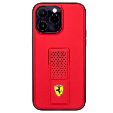 Grip Stand Perforated Hard Case for iPhone 14 Pro Max, Ferrari - Red