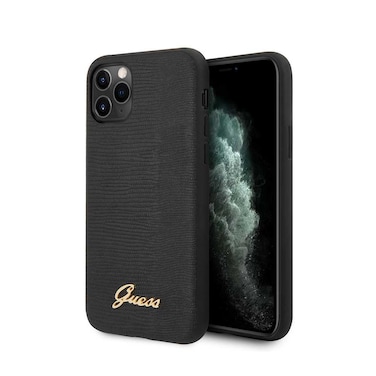 Guess - Apple iPhone 11 Pro Case, PU Lizard Print Case with Metal Logo Compatible for iPhone 11 Pro and support Wireless Charging, Easy Access to All Ports, CG Mobile Officially Licensed - Black