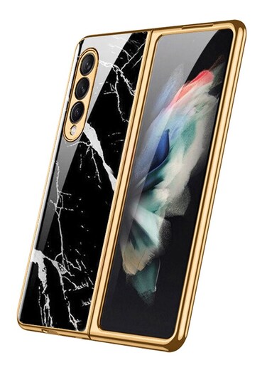 MARGOUN for Samsung Galaxy Z Fold 3 5G Case Luxury Plating Cover with Screen Protector Glass Hybrid Full Body Protection