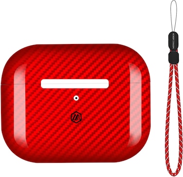 Monocarbon Real Carbon Fiber For Airpods Pro 2nd Generation Case (2022) Airpods Pro 2 Case Cover With Lanyard - Glossy Red