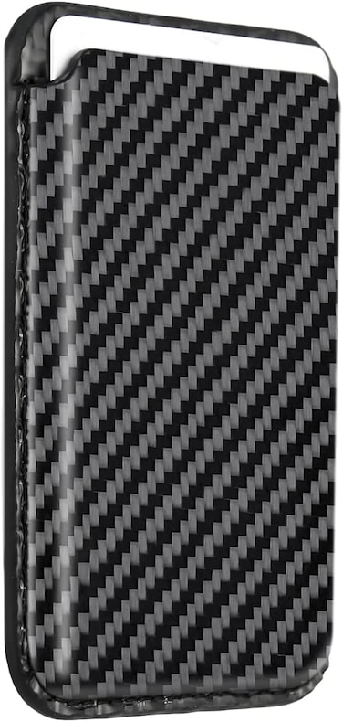 MONOCARBON Carbon Fiber Wallet is a Magnetic Card Holder compatible with MagSafe for case for Apple iPhone 14, iPhone 13 and iPhone 12 series. Made with Real Carbon Fiber material and strong integrated magnets, it is easy to install with a simple snap on MagSafe compatible products.
