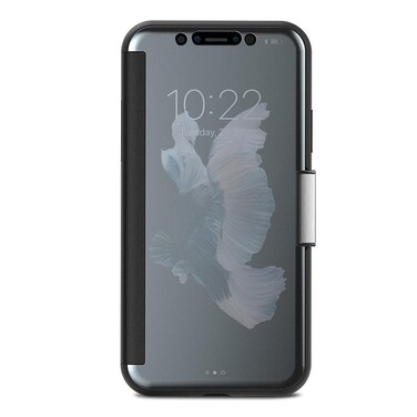 - 360 degree protection for your iPhone Magnetic clasps keep your phone protected at all times Check the time and notifications without opening the cover Military-grade drop protection (MIL-STD0810G, SGS-certified) Wireless charging compatible Moshi's StealthCover for iPhone is a slim folio-style case that offers 360-degree protection, while also letting you check your phone on the go. The case features military-grade drop protection and the front cover is secured by a magnetic clasp to ensure your touchscreen stays protected. Durable yet stylish, StealthCover mirrors the glass look and feel of your iPhone with an added touch of sophistication.