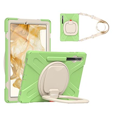 Moxedo Shockproof Rugged Colorful Case with 360 Rotating Kickstand and Shoulder Strap Compatible for Samsung Galaxy Tab S7 Plus 12.4-inch 2020 / S8 Plus 2022 (T730/T970/X800) (Matcha Green)