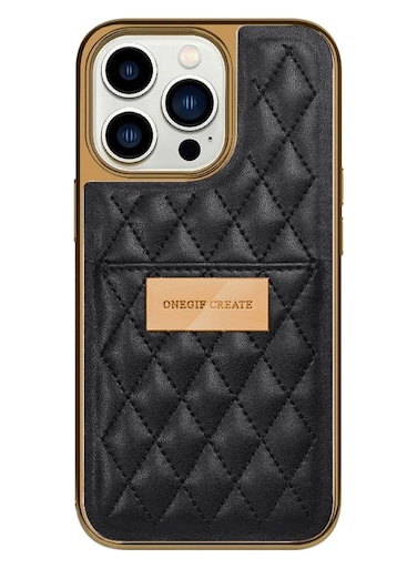 ONEGIF Design iPhone 14 Pro Max Case Premium Leather Case Cover with Card Slot Holder Black