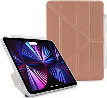 Pipetto Origami no. 3 Pencil case for Apple iPad Pro 11 inch (2022 / 2021/2020/2018) case Ultra Smart cover with 5 in 1 stand - Storage with Sync & Charge compatible with Apple Pencil 2 - Rose Gold