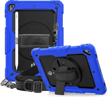 Remson Apple iPad Mini 4 / Mini 5 Rugged Shockproof Drop Protection With 360 Rotating Kickstand/Shoulder Strap Cover (Blue)