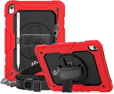 Remson Apple iPad Pro 11 (2018) Rugged Shockproof Drop Protection With 360 Rotating Kickstand/Shoulder Strap Case Cover (Red)