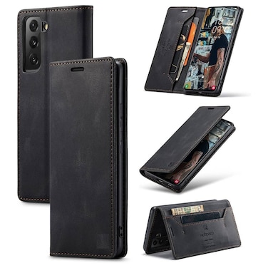 Samsung Galaxy S22 Plus Leather Case, Premium PU Leather Cases Folio Flip Cover Black
