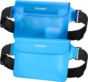 Spigen Aqua Shield Waterproof Pouch Bag A620, Dry Bag With Adjustable Waist Strap For Beach Swimming Fishing Camping Canoeing Hiking Kayaking Paddle Boarding & Boating - Sea Blue (2 Pack)