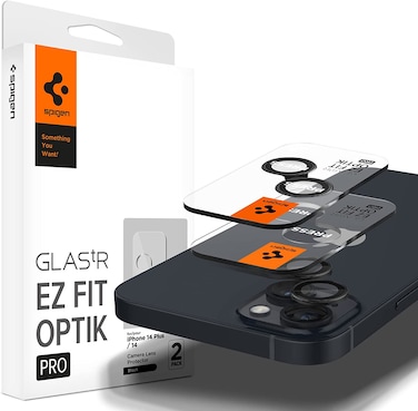 Spigen GLAStR Optik PRO Camera Lens Protector [2 Pack] for Apple iPhone 14 PLUS (6.7 inch) and iPhone 14 (6.1 inch) keeps things looking clean and your camera lens protected from all angles with 9H Tempered Glass. Get the precise fit you’ve always wanted. Use the EZ fit tray to align it directly on your lens and press down for a picture-perfect fit. We got you.