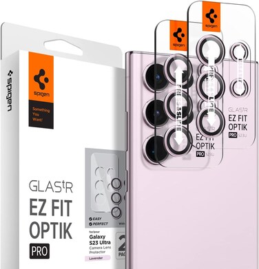 Spigen GLAStR Optik PRO Camera Lens Protector [2 Pack] for Samsung Galaxy S23 ULTRA keeps things looking clean and your camera lens protected from all angles with 9H Tempered Glass. Get the precise fit you’ve always wanted. Use the EZ fit tray to align it directly on your lens and press down for a picture-perfect fit. We got you.