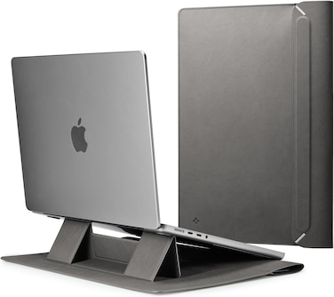 Spigen Valentinus S 16 pouch with built-in Stand for MacBook or Laptop is the ultimate blend of style and functionality to safeguard your device on the go. Designed with convenience in mind, Valentinus S is equipped with a built-in stand, providing perfect ergonomics for typing and additional cooling for your device. This stand enhances usability and comfort, allowing you to work or browse with ease wherever you are. The easy-to-open magnetic closure flap ensures quick access while keeping your MacBook Pro 16" and most 15" laptop devices securely stowed away. Its thoughtful construction features convenient side cutouts for easy access to side ports granting unhindered access to essential side ports such as charging and HDMI, even while your device rests snugly within the pouch.