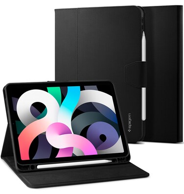 - <p>The Spigen Liquid Air Folio case / cover for Apple iPad Air 4 10.9 inch (2020) is made for the on-the-go lifestyle and crafted for ultimate defense and functionality. This Smart and Reliable case ensures quick access to the Apple Pencil with a built-in slot and also Pencil Storage. The Liquid Air Folio provides Full coverage with Auto wake/sleep function and comes lined with a soft microfiber to further protect the screen. Its ergonomic design makes it easy to carry while remaining drop-protected with its rigid casing. The cover doubles as a stand to bring convenience for hands-free viewing or when typing. A built in Hand strap enables comfortable and secure one-handed viewing.</p> <p>Keep one hand on your iPad Air and keep the grind going.</p>