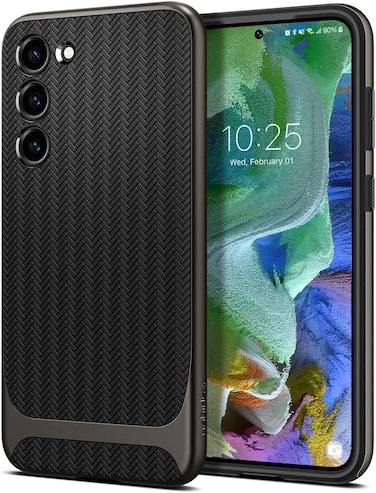 Spigen Neo Hybrid case for the Samsung Galaxy S23+ Plus protects with style. It is a balance of modern design and Slim Mil Grade protection which takes aesthetics to new heights. Its timeless look is made of a signature dual-layered body design with a shock-absorbent Herringbone pattern layer and a rigid frame to handle everyday impacts with extra grip. It offers optimum defense while staying lightweight and pocket-friendly at all times to seamlessly adapt to any lifestyle. Its matte TPU surface promises fingerprint-resistance and comfort in every grip or press of a button. Precise cutouts ensure easy access to all features while Tactile Buttons ensure haptic feedback.