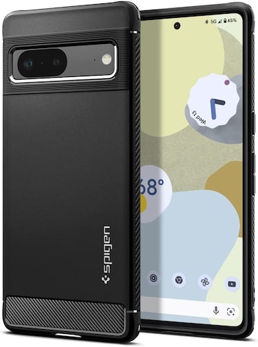 Spigen RUGGED ARMOR Case for the Google Pixel 7 packs a whole lot of style and embodies the definition of slim protection. It is a flexible TPU case packed with heavy duty protection. The Rugged Armor series still remains a fan favorite for the amount of style and protection packed in a single layer. Its signature matte black with carbon fiber details are timeless but also prepared for impact in case of drops and falls. A new addition is a Carved Stripe Pattern for Steady Grip. Every corner is guarded with Spigen Patented Air Cushion Technology while edges are raised to protect the screen and camera. Precise cutouts provide easy access to features with zero delay while tactile buttons ensure haptic feedback.