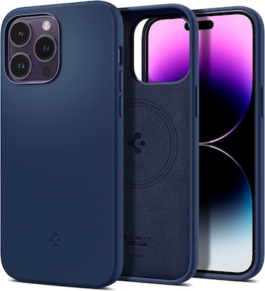 Spigen Silicone Fit MagFit case for the Apple iPhone 14 Pro is built for the quintessential minimalist, offering a great grip plus ultimate comfort via it's skin friendly Premium Soft and Shock absorbent Silicone exterior with integrated magnetic rings compatible with MagSafe accessories. The middle layer is a Polycarbonate shell for shape retention of the case while the inside is lined with extra soft microfiber lining to ensure your phone is kept scratch-free in every drop. Strategically raised edges keep the screen and camera protected on flat surfaces.