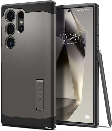 Spigen Tough Armor case champions your Samsung Galaxy S24 ULTRA with full-fledged protection and a kickstand for unbeatable convenience. Constructed with 3 different layers : Extreme Impact Foam absorbs excess shock dispersed from the TPU layer via Spigen Patented Air Cushion Technology in all corners and a Hard Polycarbonate exterior which handles all extremities & mitigates shock to its sublayers. The result: An astonishingly fortified casing with utmost defense within a slim & ergonomic frame.