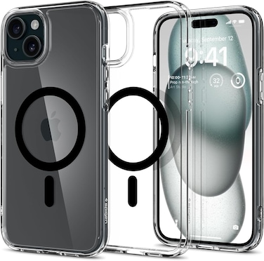 Spigen ULTRA HYBRID MAGFIT case for Apple iPhone 15 Plus is designed for strong MagSafe compatible connections and is the optimum case for lasting clarity with defense. It allows you to experience Hybrid Technology that packs advanced drop protection in a single layer. A Full Enclosure case with a perfect blend of Soft, grippy shock-absorbent TPU bumper fused on to a Hard Transparent Back Panel to provide long lasting clarity with a built-in MagSafe compatible magnetic ring for strengthened connections. Corners are guarded with Air Cushion Technology that takes all the shock from everyday impact.