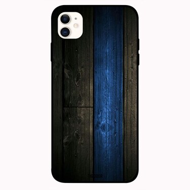 Theodor - Apple iPhone 12 Mini 5.4 inch Case Black & Blue Wood Flexible Silicone Cover