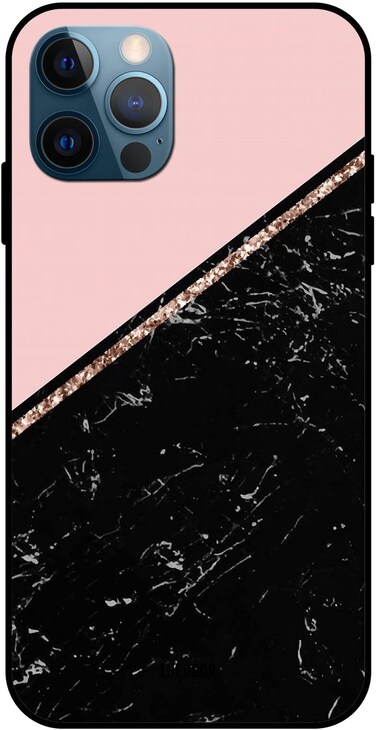 Theodor - Apple iPhone 12 Pro Case Black & Pink Background Flexible Silicone Cover