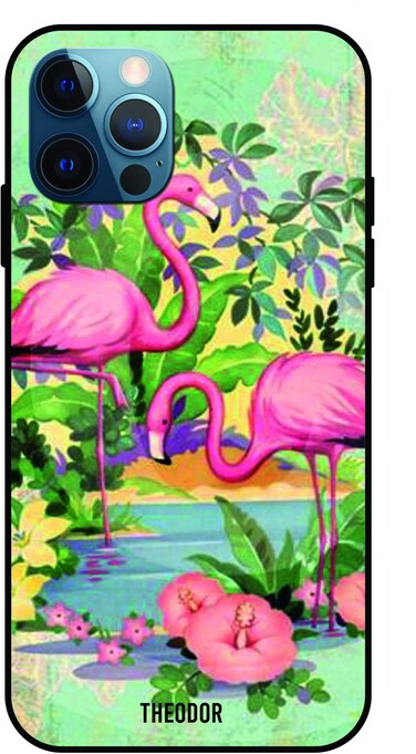 Theodor - Apple iPhone 12 Pro Max 6.7 Inch Case Pink Flamingoes Flexible Silicone Cover