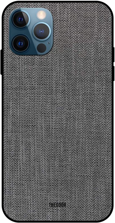 Theodor - Apple iPhone 12 Pro Max Case Grey Cloth Flexible Silicone Cover
