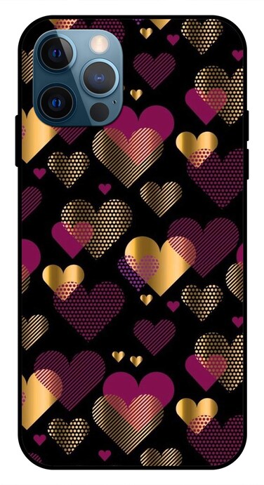 Theodor - Apple iPhone 12 Pro Max Case Pink & Golden Heart Flexible Silicone Cover