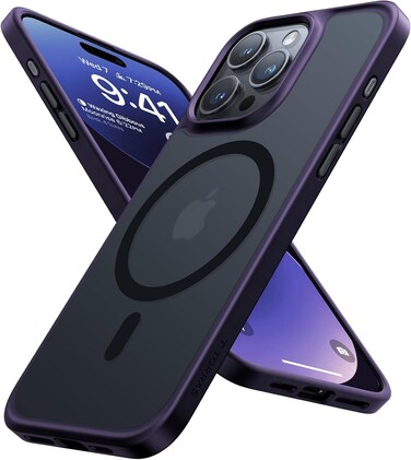 TORRAS Magnetic Shockproof For iPhone 15 Pro Case, 18N Strong Magnetic, 12 FT Military-Grade Protection, MagSafe, Protective Translucent Matte Slim Case, Guardian Magnetic Series, Dark Purple