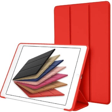 TRON Case Compatible For Apple iPad 9.7 Case 2018 iPad 6th Generation Cases/2017 iPad 5th Generation Case with Pencil Holder,Slim Soft Silicone Smart Trifold Stand Protective Cover, Red