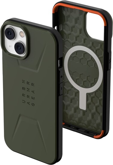 Urban Armor Gear Designed For iPhone 14 Case, 6.1" Civilian Built-In Magnet Compatible With Magsafe Charging Sleek Ultra Thin Slim Dropproof Shockproof Protective Cover, Green Olive